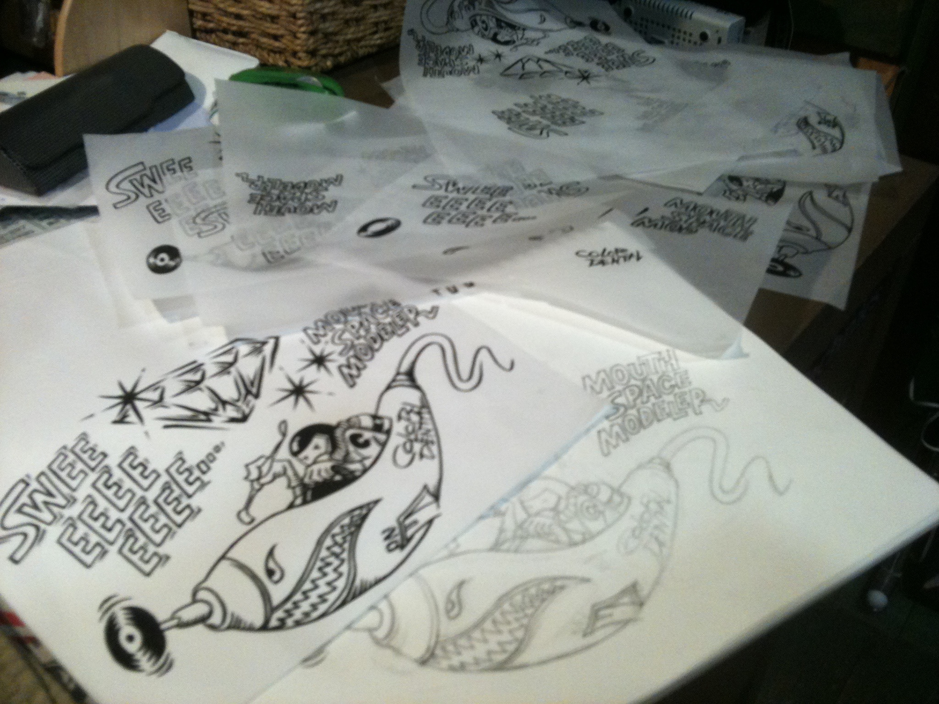 The design is screen-made, the print is taken, and the cartoon is composed.